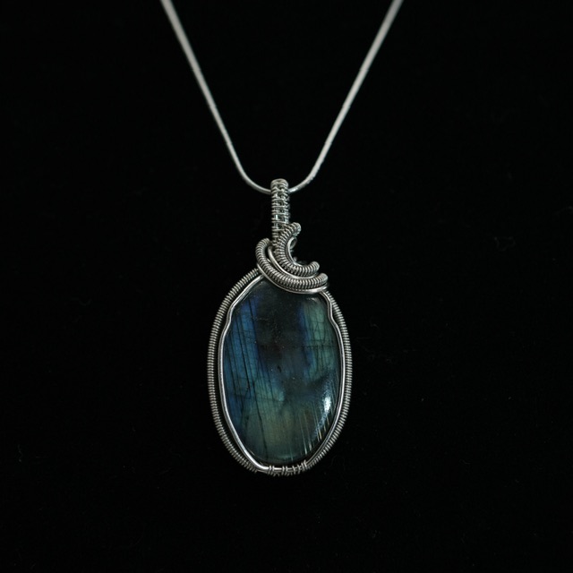 Crafted with patience and care, this marquise-cut labradorite reveals ocean-blue flashes with the slightest movement. Each turn of the wire follows the stone’s natural curves, forming a handcrafted cradle that highlights its shape without overwhelming it.